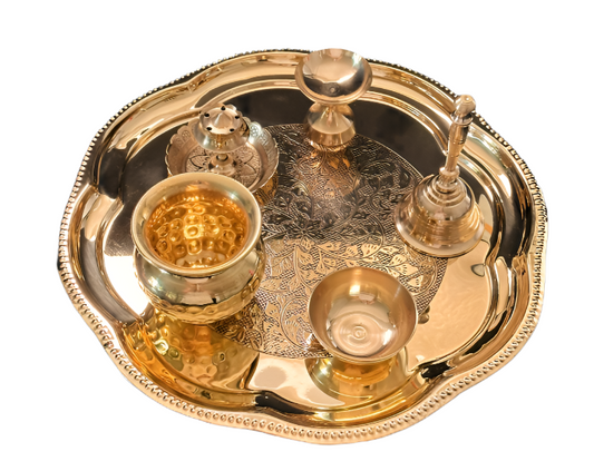 Designer Brass Puja Thali Set of 6 item - 12inch