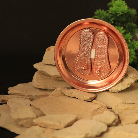 Copper Charan Paduka on Plate - Divine Blessings and Spiritual Elegance