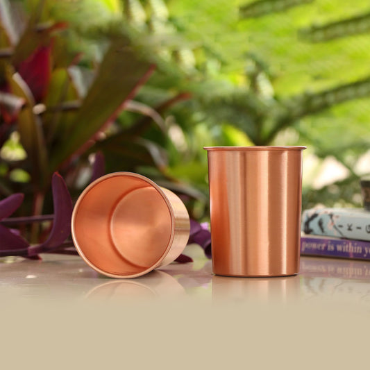 Pure Copper Matt Finish Lacquer Coated Leak Proof Drinkware Gift Set of 2 Glass and 1 Bottle