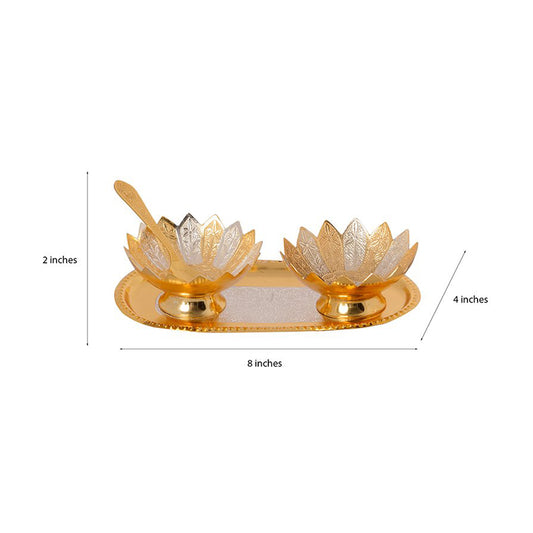 Silver/Gold plated set of 2 bowl, 2 spoon and 1 tray in velvet gift box