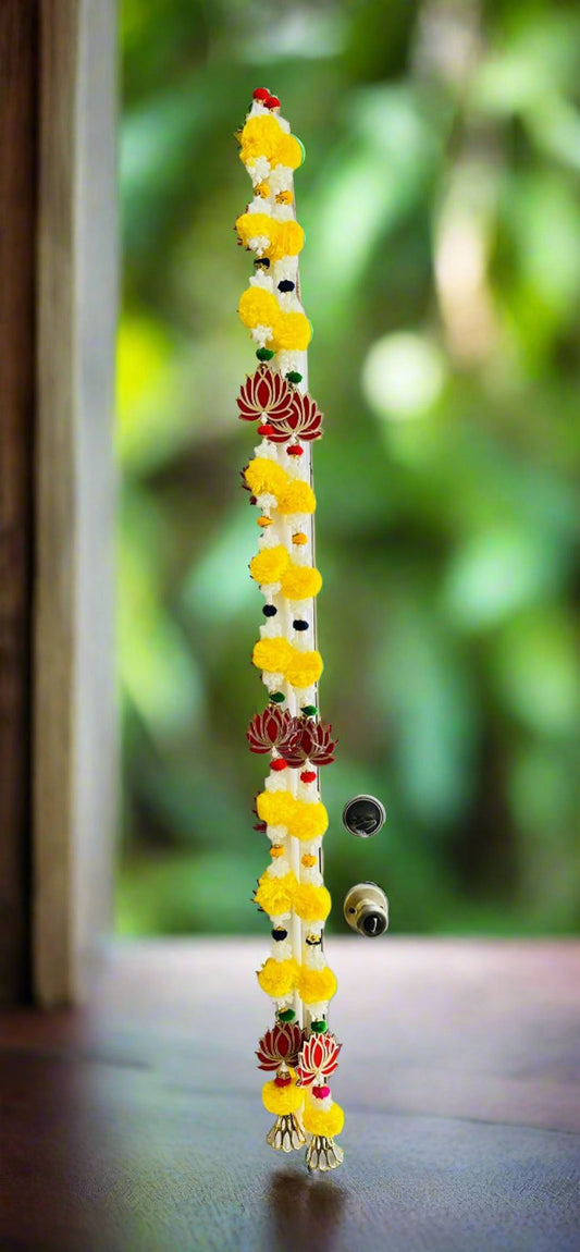 5ft Handcrafted Red Lotus with Yellow Marigold Latkan, Traditional Indian Doorway Decor- comes in a pair