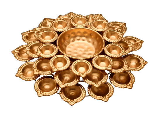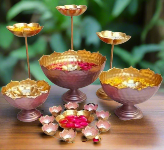 Taj urli Bowl Set with 3 Lotus tealight Candle Stand & Floating Diya