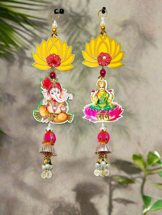 Handcrafted Lotus Ganesh-Laxmi Latkan Subh-Labh - Traditional Indian Doorway Decor -14'