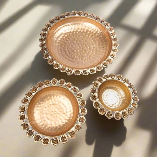 Lotus Diya Set of 3 Stands – Elegant Oil Lamps for Festive Decor