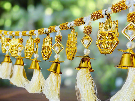 White and Gold Handcrafted Toran - Traditional Indian Doorway Decor
